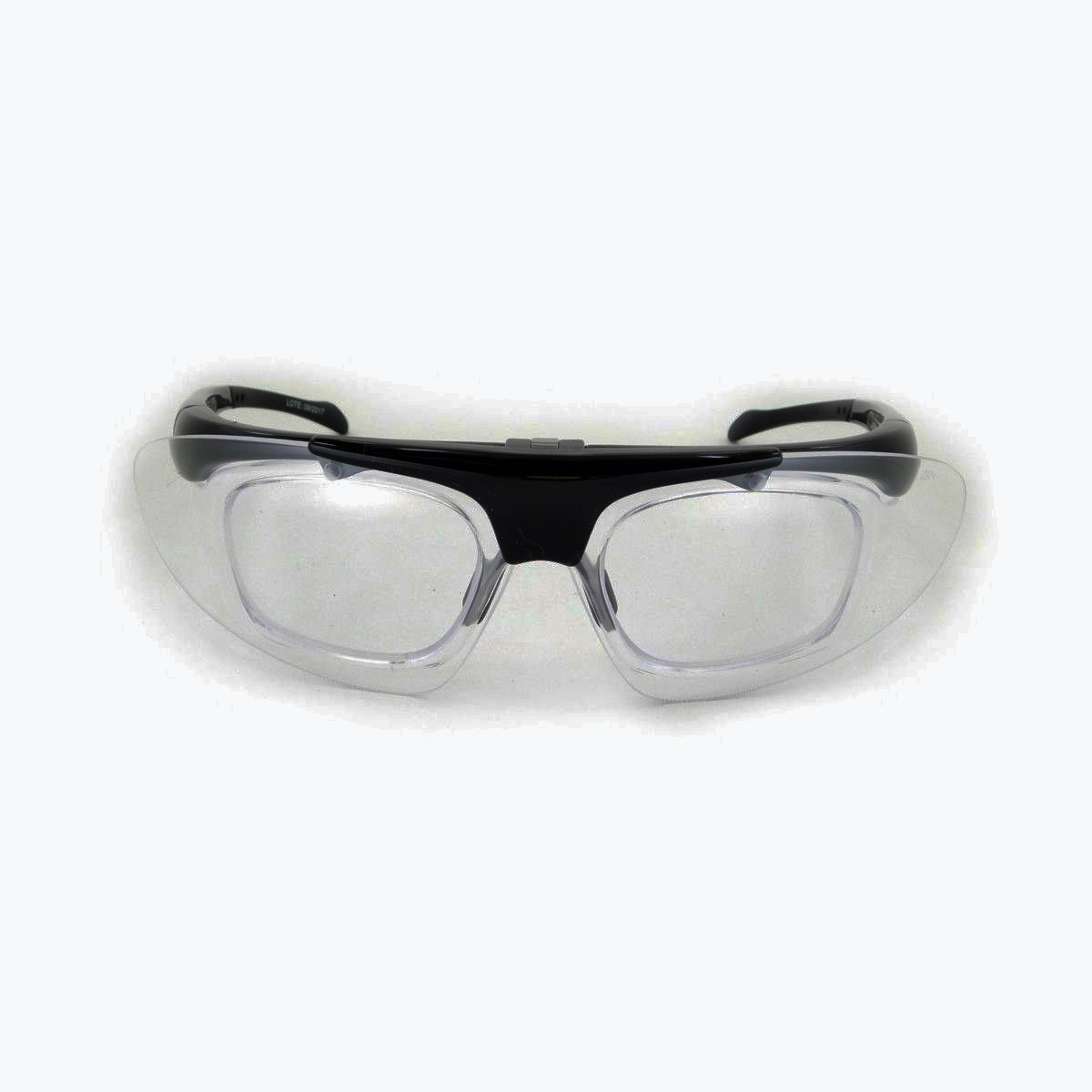 Visor de policarbonato oftálmico. Lente de seguridad con marco interior para lente de preescripción. Permite uso de lente óptico incorporado. Lente óptico desmontable.