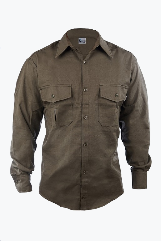 Camisa de trabajo SECURITY con dos bolsillos con fuelle y tapa. Consultar por personalización de prendas (logos estampados o bordados y cintas reflectivas). INDUSTRIA ARGENTINA.