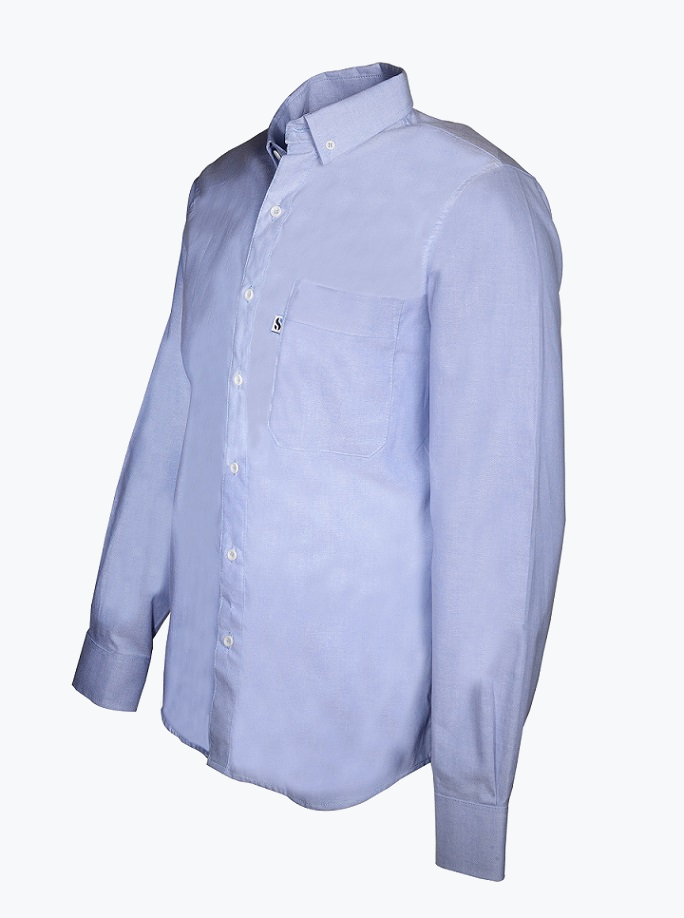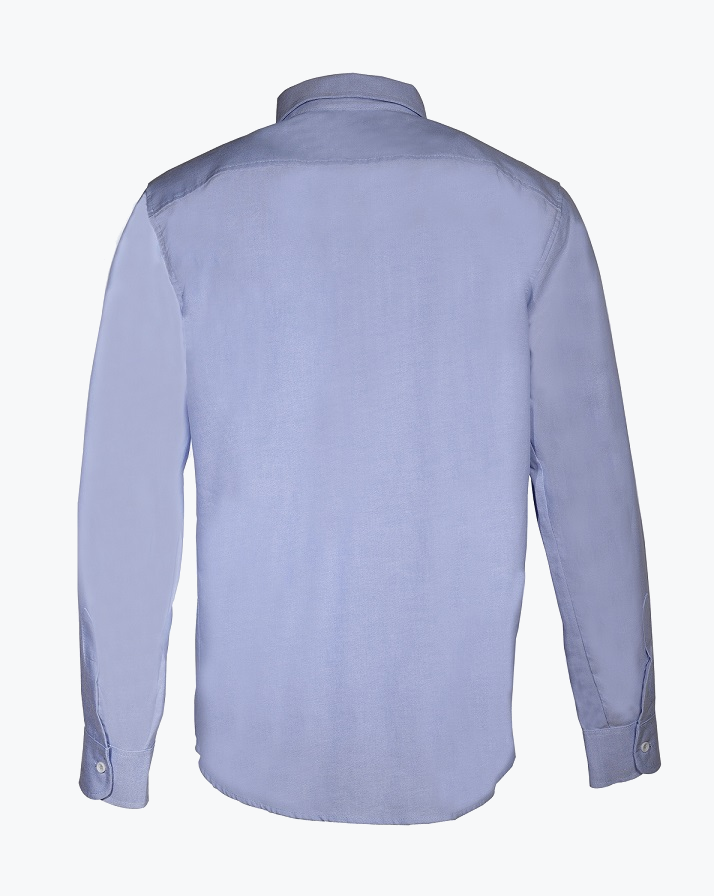 Camisa de vestir manga larga en Oxford INTA – 220 g/m2 75% Algodón / 25% Poliéster Cuellos y puños fusionados No precisa planchado Botones de pasta 1 Bolsillo plaqué frontal