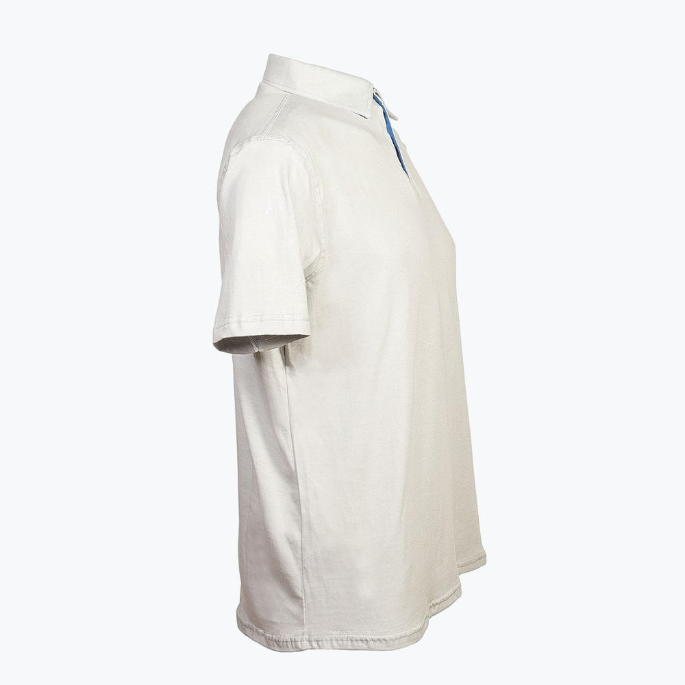 Chomba en Jersey Peinado 24/1 100% Algodón – 170 g/m2 Cuello en jersey fusionado Detalles en contra tono Cartera con 3 botones de pasta