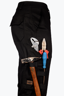 Pantalón Cargo Security. Hombre. Botón metálico. Cierre YKK. Triple Costura. 6 Bolsillos (2 delanteros + 1 lateral PORTAHERRAMIENTAS + 1 lateral + 2 traseros).