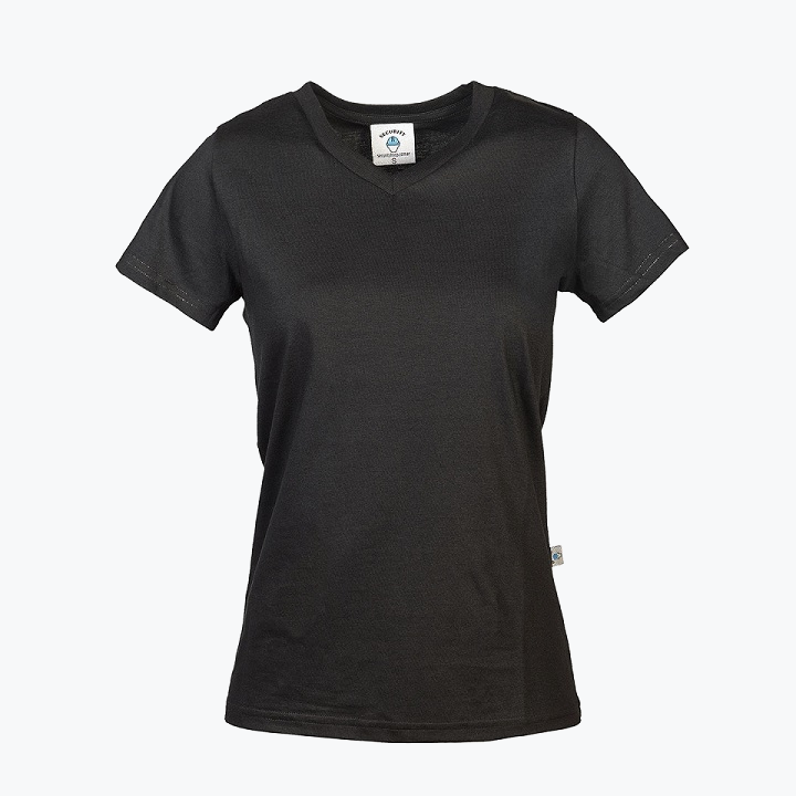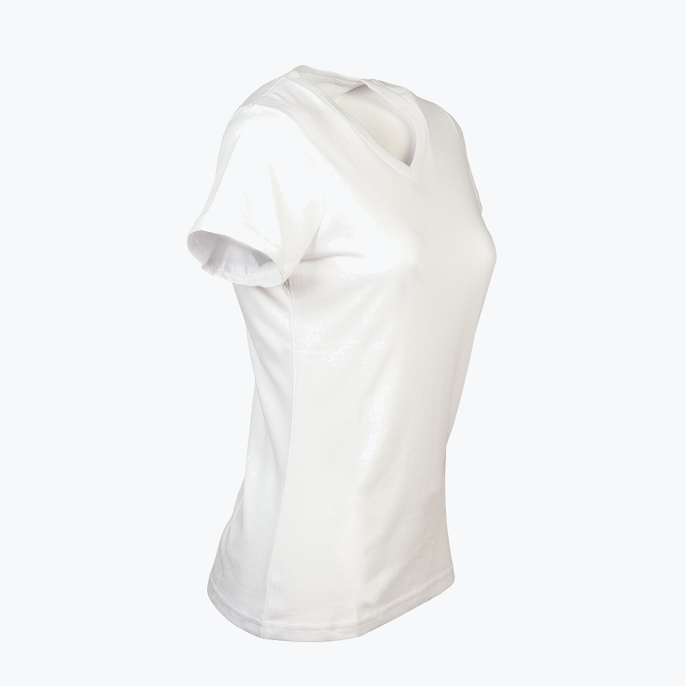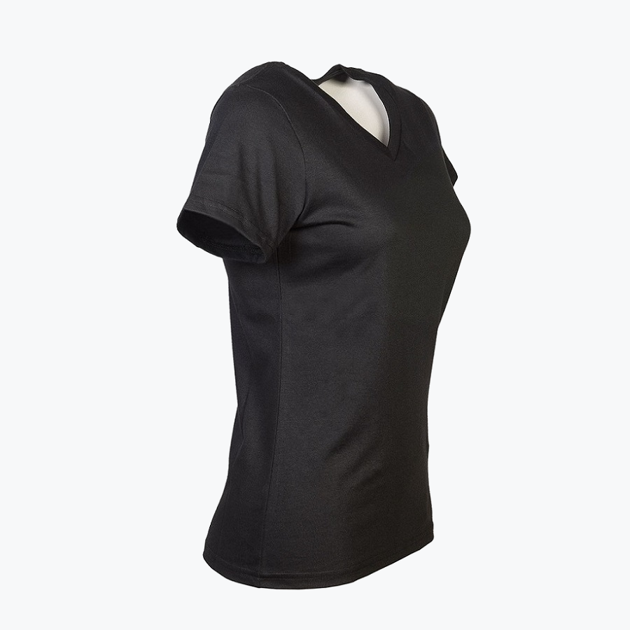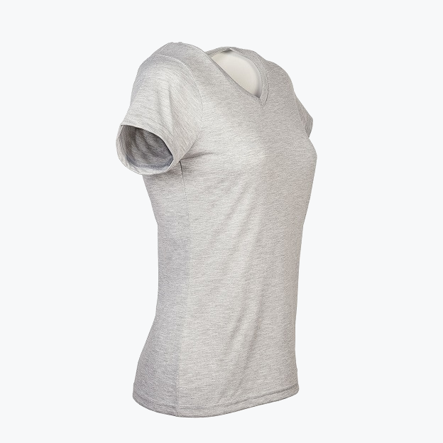 Tejido Jersey Peinado 30/1 100% Algodón – 150 g/m2 Cuello escote en V de Ribb Modelo entallado